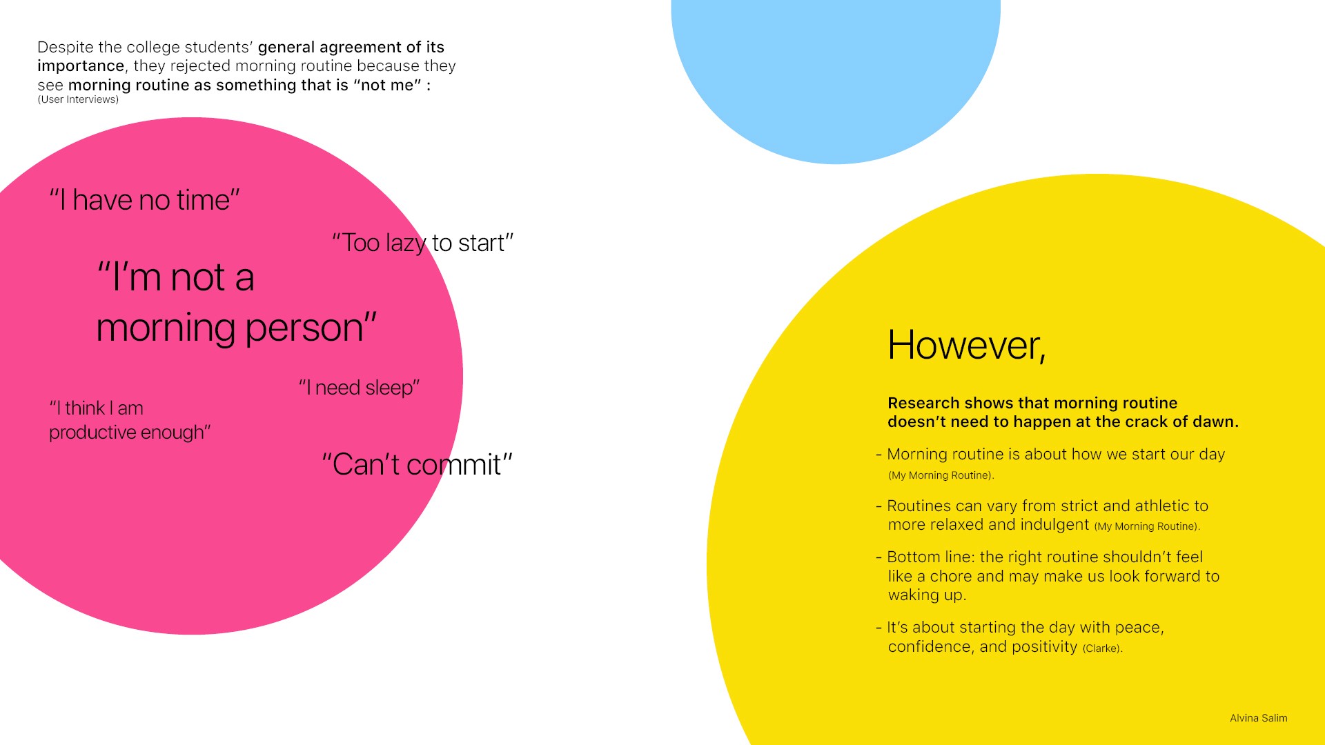Insight: While users acknowledged the benefits of a morning routine, there were common misconceptions. They underestimated its impact on productivity and well-being, and perceive it as impractical, hence less prioritized, to fit in their unpredictable and busy college schedules.