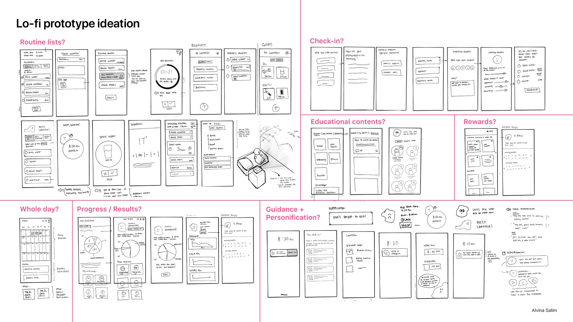 Using the design criteria as my guiding principles, I engaged in an ideation process to generate product solutions, exploring both physical and digital realms without imposing limitations. This approach aimed to foster creative ideas during the early stages and prevent the dismissal of innovative concepts.