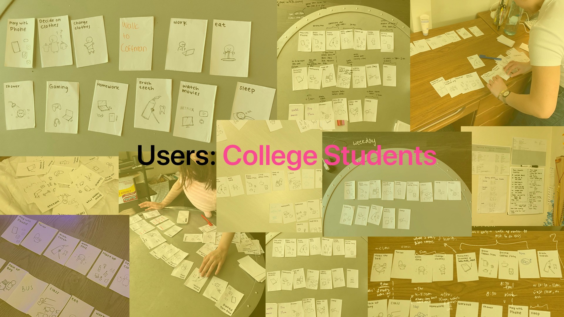 By providing users with a deck of cards to sort and represent their schedules, I gained deep insights into their daily routines. Through this combination of interactive methods and user interviews, I visually mapped out the users' journey and fostered empathy with them.