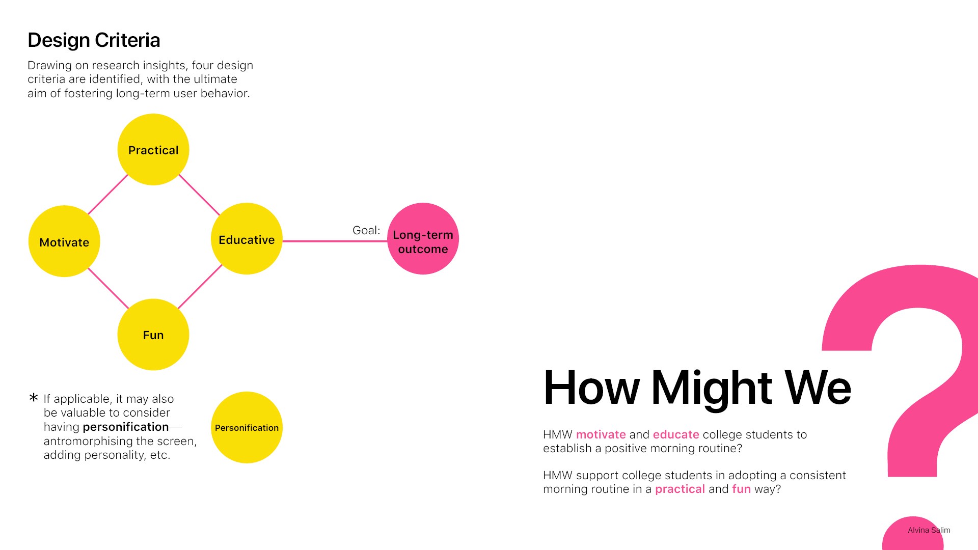 Defined design criteria as success metrics based on the collected insights.