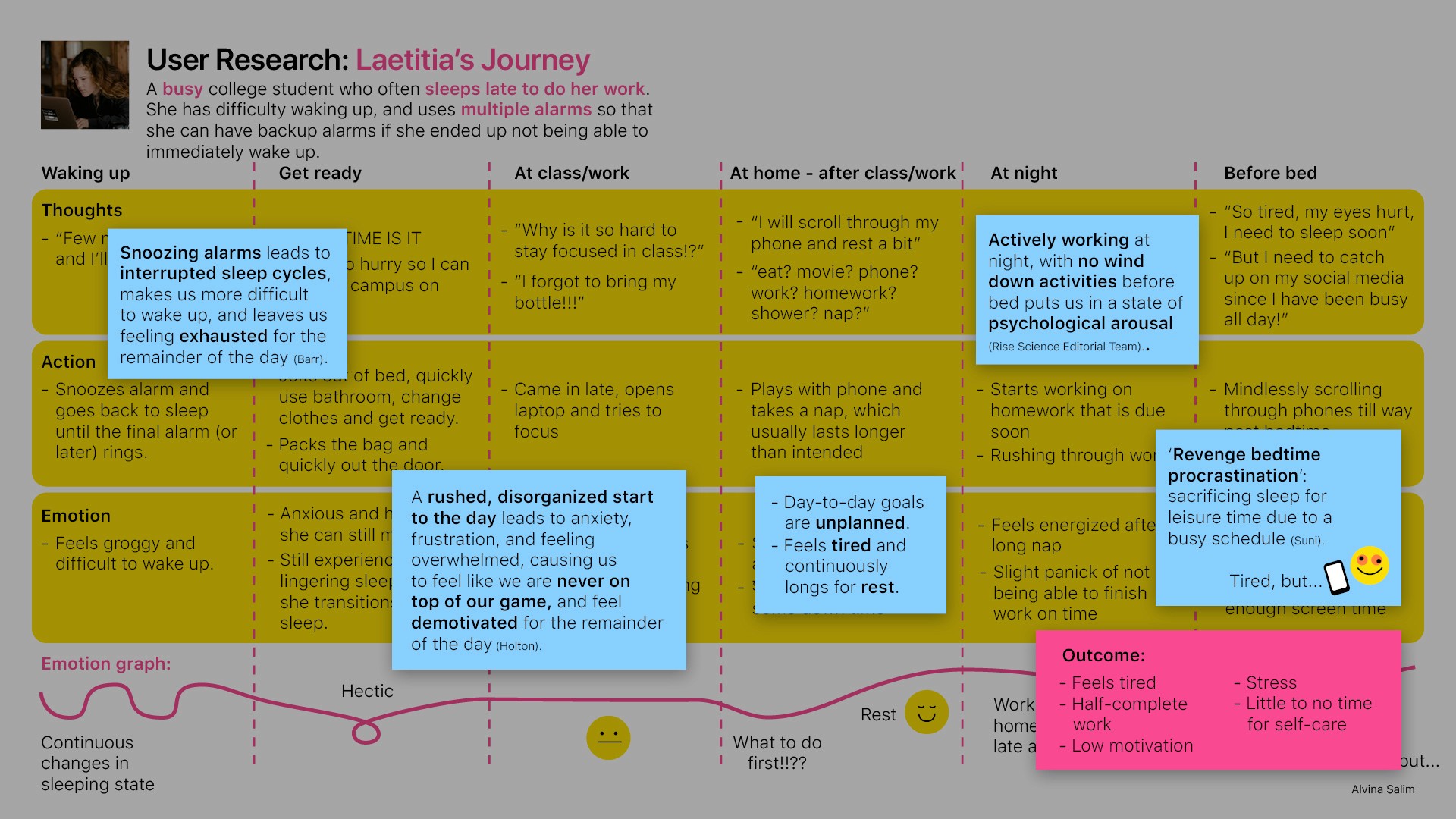 User research: What does the user's daily schedule look like? What about their motivations? goals? emotions? ...